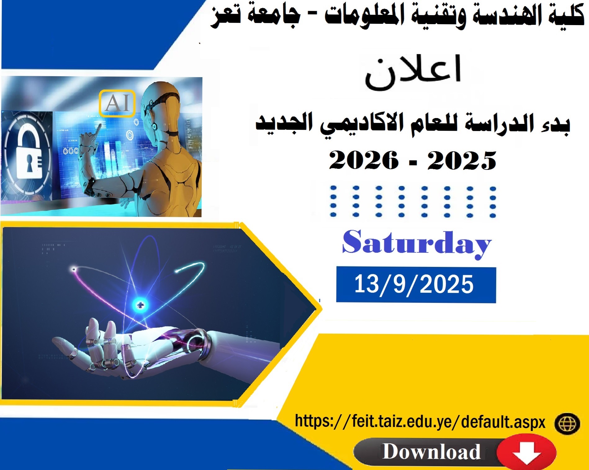 21-09-2025 : جدول المحاضرات للفصل الدراسي الاول 2025/ 2026 كلية الهندسة وتقنية المعلومات جامعة تعـــــز
